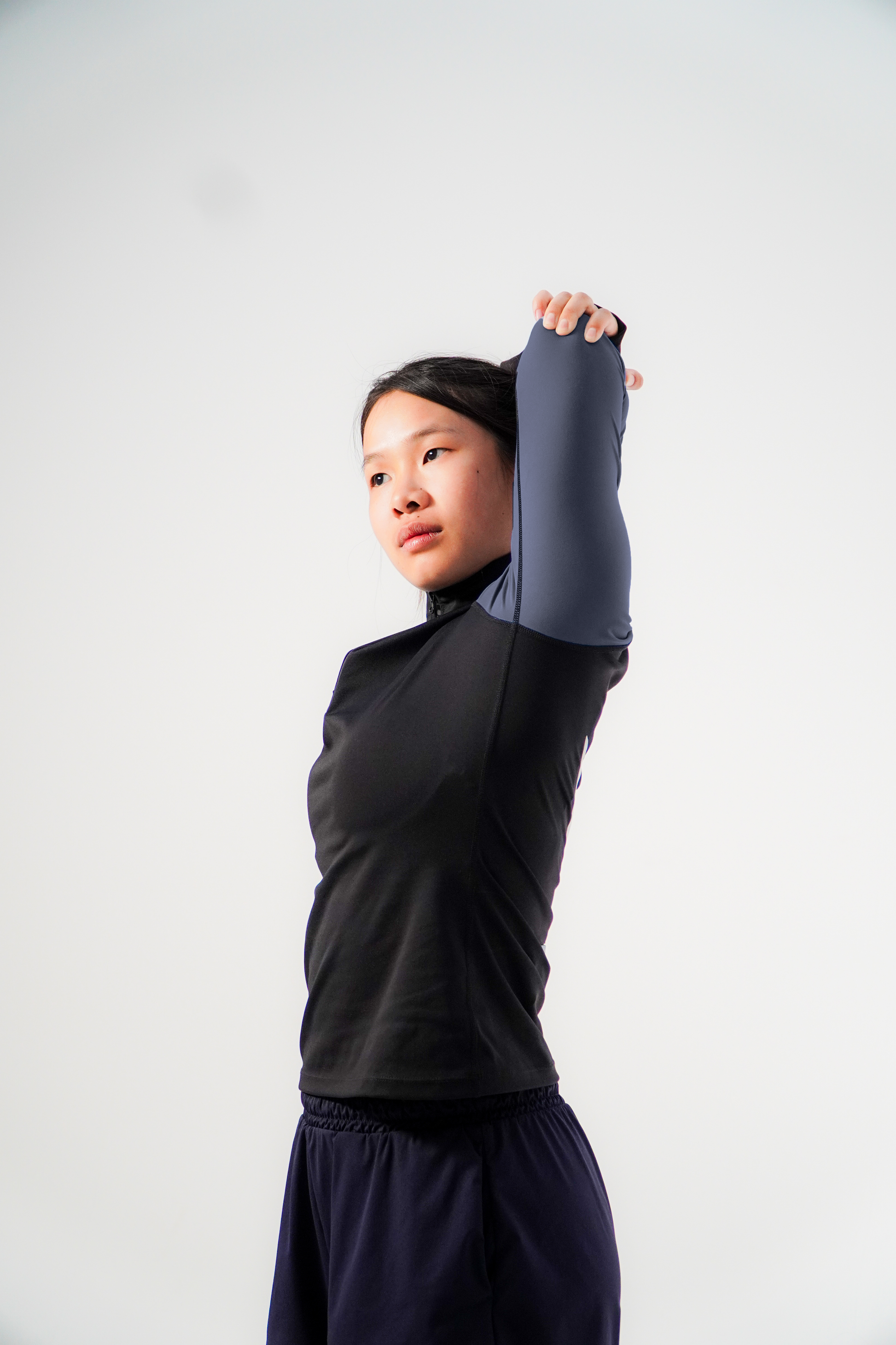 Features: Moisture-wicking and quick-drying fabric, 4-way stretch for full mobility, quick drying, thumbholes to keep sleeves in place, ideal for layering or wearing solo in cooler temps, back pocket for essentials